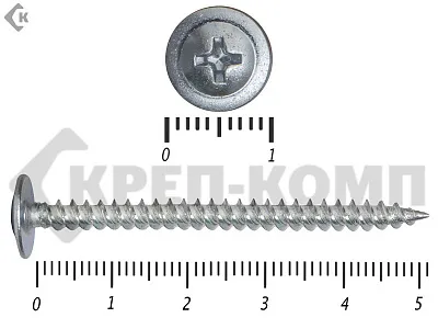 Данные саморезы имеют плоскую шляпку с шлицом под насадку Ph2. Они делятся на две основные группы: